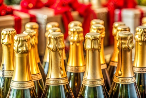 Elegant boxing day champagne bottles in golden foil for festive celebration