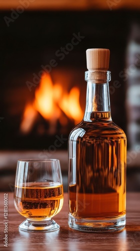 brandy, bottle, wax, seal, cork, glasses, drink, amber, liquid, alcohol, beverage, luxury, celebration, warm, cosy, fireplace, serving, container, spirit, tasting, tradition, elegance, rustic, home, living, warmth, atmosphere, extract, craftsmanship, oak, smooth, quality, refined, enjoy, vintage, classic, rich, favor, pour, hospitality, savour, glassware, still life, nature, natural light, epicure