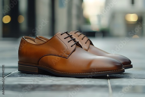 Elegant Brown Leather Dress Shoes on Urban Pavement