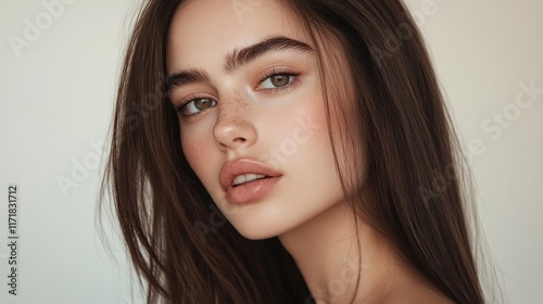 Elegant Brunette Model Showcasing Long, Silky Hair in a Radiant Beauty Portrait