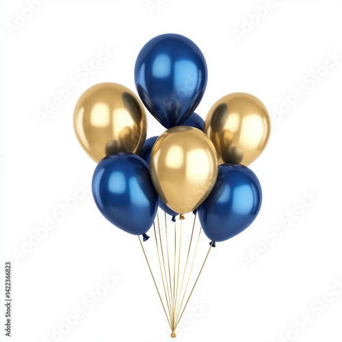 Elegant Bunch of Balloons in Gold and Navy Blue on White Backdrop Celebration Festive Party Decor