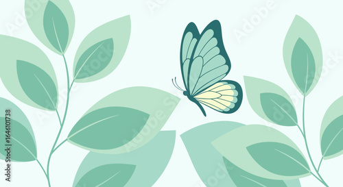 Elegant Butterfly and Leaves Illustration with Serene Color Palette for Nature Designs
