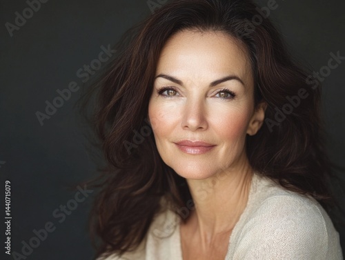 elegant, caucasian, female, portrait, mature, beauty, woman, adult, face, serene, sophisticated, confident, hair, expression, natural, light, smile, warm, glow, eye, lip, skin, fashion, style, poise, graceful, demeanor, charme, allure, chic, timeless, aesthetic, make-up, feature, attractive, photograph, texture, soft, subtile, calm, peaceful, harmonious, balanced, classic, refined, poised, captivating