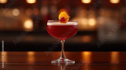 Elegant Cherry Cocktail with Citrus Garnish in Upscale Bar Setting