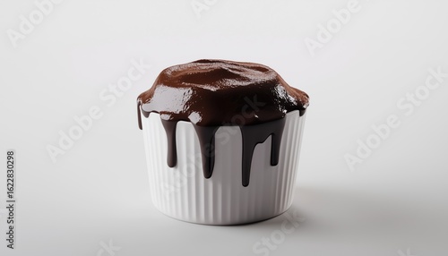 Elegant Chocolate Souffle With Rich Chocolate Glaze Served In A Cup On A Stylish Grey Background - An Indulgent Dessert Delight.