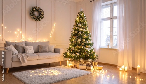 Elegant Christmas Living Room – Warm Interior with Tree, Candles & Cozy Decor