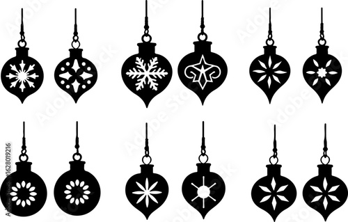 christmas, ornament, silhouette, festive, christmas ornament, black-and-white, christmas bauble, winter holiday, snowflake, ornament, earring