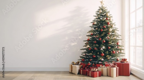 christmas, tree, decoration, window, elegant, holiday, festive, gift, present, red, gold, ornament, pine, seasonal, celebration, wallpaper, light, cosy, home, interior, design, star, ribbon, floor, winter, december, traditional, merry, bright, joyful, style, classic, warmth, greenery, family, serene, cheerful, peaceful, ambience, adornment, space, decor, spirit, welcoming
