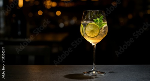 cocktail, glasses, lime, mint, garnish, drink, beverage, refreshing, light, elegant, sophisticated, night, dark, background, citrous, alcohol, party, bar, decoration, slice, cold, ice, herb, leaf, glowing, bright, lemon, liquid, still life, epicure, sparkling, luxurious, aromatic, summer, thirst quenching, transparent, vibrant, scene, culinary, art, tasteful, sip, enjoy, ambience
