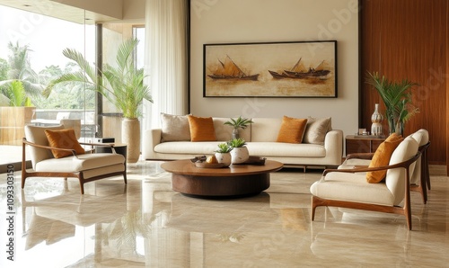 living room, elegant, contemporary, natural, light, stylish, furniture, decor, interior, design, modern, sophisticated, comfortable, roomy, bright, cosy, chic, luxury, plant, wooden, art, painting, pillow, sofa, chair, table, window, glasses, view, relaxing, calm, home, warm, inviting, neutral, tone, ornament, feature, architecture, decorative
