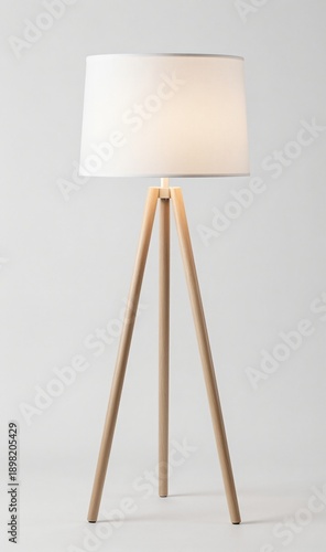 elegant, contemporary, wooden, tripod, floor, lamp, soft, isolated, clean, white, background, interior, design, light, standing, lighting, fixture, illumination, wood, racked, leg, shade, fabric, modern, minimalist, nordic, scandinavian, stylish, decor, home, furniture, object, product, studio, cut-out, vertical, warm, electric, furnishing, household