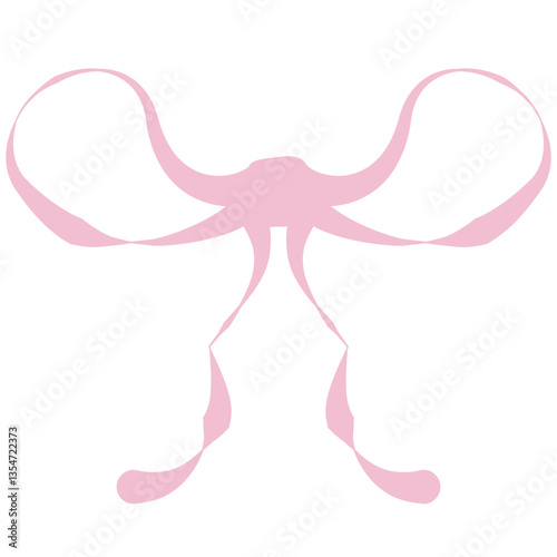 Elegant Coquette Pink Ribbon Bow Illustration – Hand-Drawn Pastel Vector Clipart