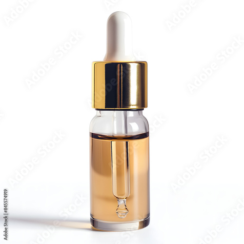 Elegant Cosmetic Dropper Bottle with Golden Details on White