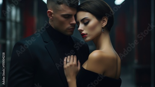 elegant, couple, black, formal, intimate, modern, love, fashion, romance, style, evening, gown, tuxedo, hugs, dark, passion, chic, beauty, sophisticated, moment, glamour, human relationships, night, togetherness, bond, jewellery, affection, timeless, posh, luxury, elite, allure, suave, poised, dramatic, mysterious, connected, desire, enchanting, stylish, graceful, tender, exquisite, refined