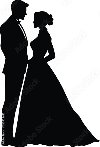 couple, silhouette, vector, illustration, romantic, elegant, love, wedding, bride, groom, black, dark, monochrome, art, design, graphic, style, fashion, dress, suit, formal, classic, married couple, simple, minimalist