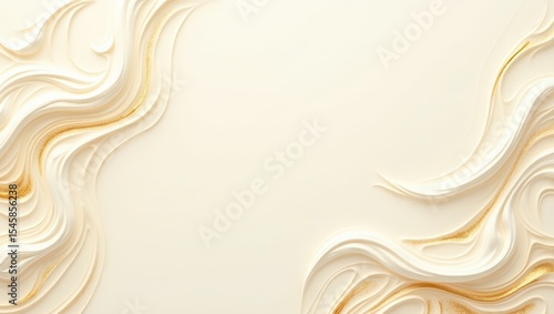Elegant cream and gold abstract background with swirling waves and copy space