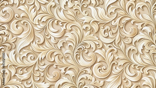 Elegant cream-colored seamless pattern with intricate swirls and organic shapes, creating a luxurious and refined visual effect