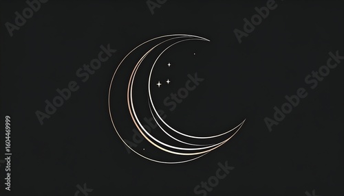 moon, crescent, star, graphic, design, minimalist, art, celestial, night, dark, gold, silver, line, delicate, subtile, elegant, simple, abstract, beauty, symbol, cosmos, mystic, aethereal, illustration, vector, modern, outline