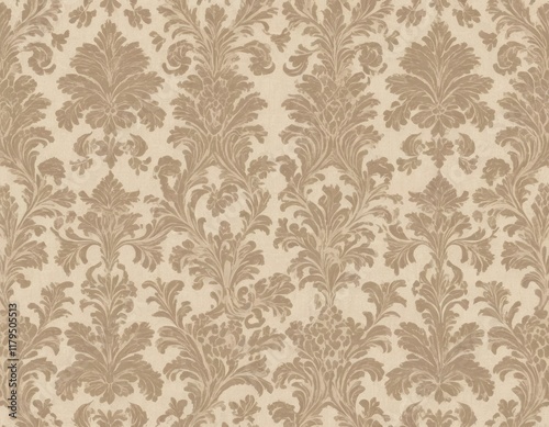 Elegant Damask Wallpaper: Beige and Brown Floral Pattern, Seamless Vintage Texture for Interior Design