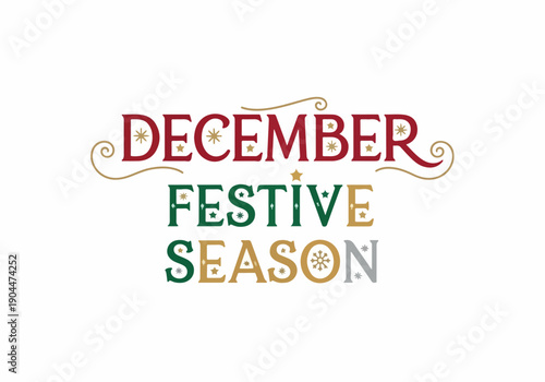 Elegant December Festive Season typographic design with festive colors and ornate decorative elements, perfect for winter holiday celebrations and seasonal greetings