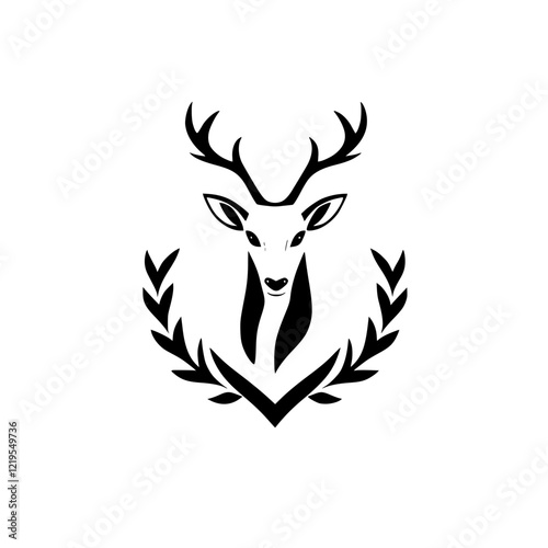 Elegant Deer Head with Laurel Wreath: Minimalist Black and White Animal Logo Design