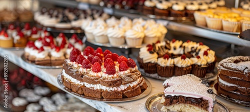 dessert, epicure, bakery, cake, tart, pastry, elegant, delicious, flour, baking, ingredient, display, sweet, variety, presentation, culinary, craftsmanship, appetising, food, confectionery, treat, indulgence, delicacy, culinary arts, food photography, pastry shop, dessert, cream, frosting, red berry, slice, sponge cake, chef