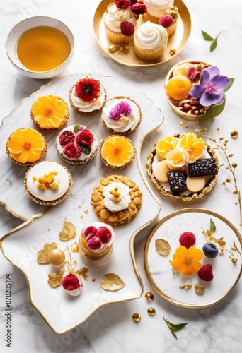elegant dessert sampler displayed white plates, sweet, treat, assortment, delicious, pastries, cakes, confectionery, gourmet, presentation, classy