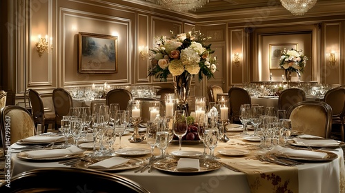 luxury, dinner, table, elegant, flower, celebration, decoration, setting, interior, wedding, dining, decor, plate, food, eatery, banquet, party, style, napkin, room, design, goggles, event, chandelier, holiday, silverware, chair, formal, home, candle, cutlery, house, classic, reception, meal, lunch, gold, indoor, ambience, ornate, elegance, white