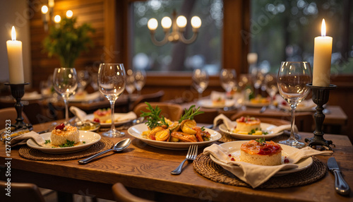 dining, table, epicure, dish, candle, elegant, eatery, food, decor, evening, glassware, atmosphere, romance, setting, plate, fine dining, wooden table, hospitality, warm colors, social gathering, appetiser, dessert, greenery, indoor, ambience, tranquil, culinary, dining room, sophisticated, celebration, intimacy, gathering, peaceful, tasty, appetising, flavorful, banquet, culinary arts