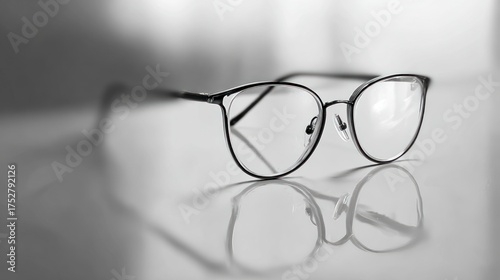 eyeglass, goggles, optical, eyewear, fashion, design, accessory, metal, frame, light, shadow, still life, product, closeup, isolated, detail, modern, elegant, minimalist, greyscale, monochrome, black, white, clear, style, stylish, photographic, high-quality, copy space, table, surface, indoor, day, image, photo, object, detail, lifestyle, catalog, illustration