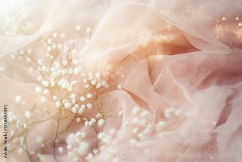Elegant fabric backdrop featuring soft textures and delicate flowers for a serene atmosphere
