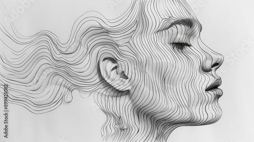 Elegant female profile lines drawn with black fine lines on a white background, embodying a minimalist and modern artistic concept.