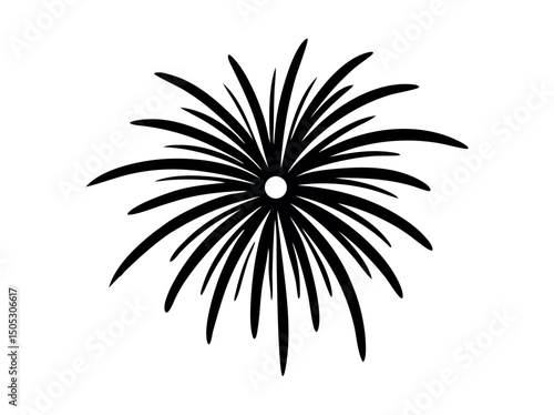 Elegant fireworks design vector illustration, A simple, black and white graphic of a fireworks display. Fireworks Design for Celebration, explosion, party, event, holiday, summer, design element, vect