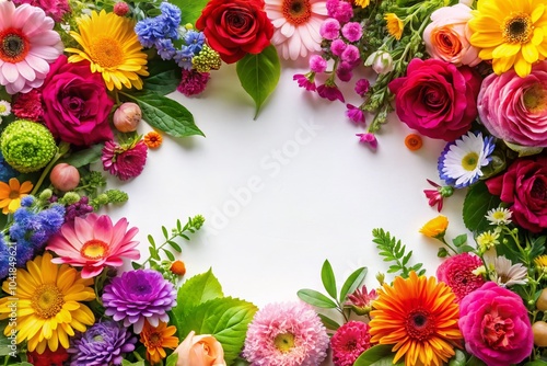 colorful flowers, green leaf, white background, stationery, invitation, nature, botanical, decoration, greeting card, floral arrangement, garden flower, design element, aesthetic, handcraft, customizable, natural beauty, graphic design, floral pattern