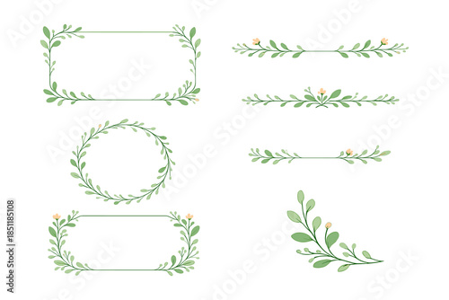 Elegant floral borders and frames set with delicate greenery and blossoms
