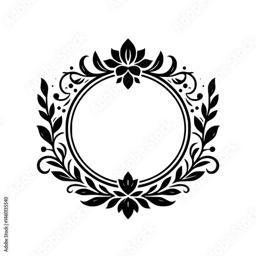 vector, floral, frame, chaplet, circle, ornament, leaf, botanical, elegant, decorative, flourish, black, white, invitation, wedding, logotype, badge, design element, illustration, vintage, classic, border, isolated, blank space, monochrome