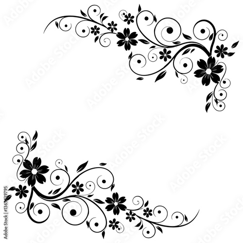 Elegant Floral Frame with Swirls – Black and White Decorative Border