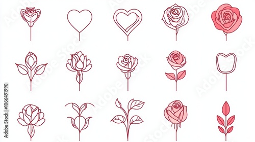 rose, nubes, flower, floral, art, design, illustration, line, outline, plant, love, romance, decor, pattern, graphic, beauty, nature, creative, simplicity, elegance, artistic, pink, red, fresh, botanical, gift, celebration, holiday, valentine, wedding, invitation, card, spring, summer, graphic design, vector, background, decoration, minimalistic, modern, aesthetic, charming, cute, stylish, artwork, creativity