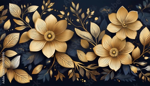 elegant floral pattern featuring golden flowers and leaves on a dark background creating a luxurious and sophisticated atmosphere