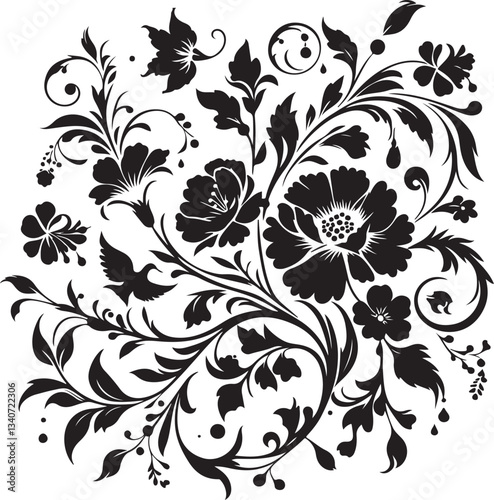 Elegant Floral Silhouette | Intricate Flower Vector Design for Laser Cutting