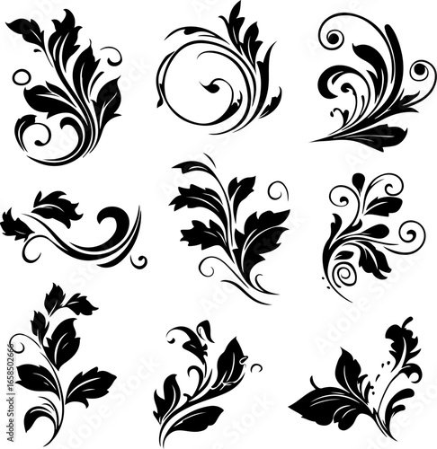floral, swirl, vector, design, ornament, decorative, vintage, flourish, leaf, black-and-white, abstract, tattoo, botanical, art, pattern, elegant, curve, foliage, scroll, nature, illustration, classic, silhouette, retro, intricate, baroque, motif, arabesque, filigree, aesthetic, outline, flower, scrollwork, damask, doodle, engraving, victorian, romantic, style, texture, embellishment, line art