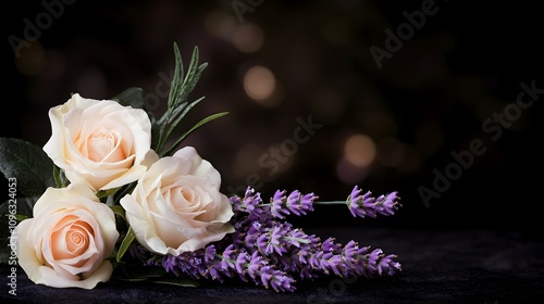 calming, bouquet, bloom, tribute, home decor, arrangement, rose, floral, elegant, peaceful, lily, lavandula, serene, subtile, beauty, dark background, flower petals, delicate