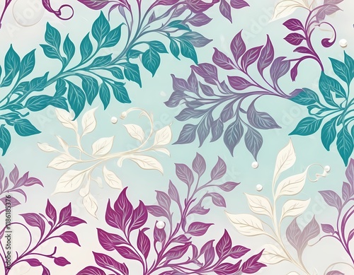 floral, vine, leaf, glowing, aglow, teal, magenta, gold, gradient, pattern, seamless, elegant, intricate, botanical, design, luxury, aethereal, decor, nature, swirl, decorative, foliage, abstract, vibrant, colourful, aesthetic, ornament, wallpaper, art, texture, background, soft, detailed, artistic, fantasy, dreamy, modern, symmetric, curling, creative, rich, leaf, plant