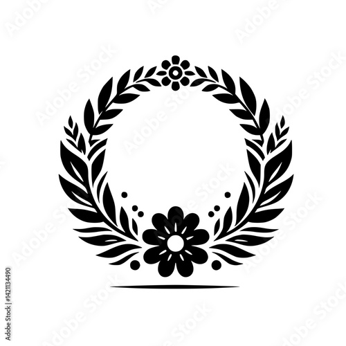 vector, chaplet, floral, black-and-white, leaf, flower, circle, frame, design, decoration, elegant, template, minimalist, simple, nature, border, laurel, badge, emblem, invitation, greeting, logotype, wedding, anniversary, isolated, botanical