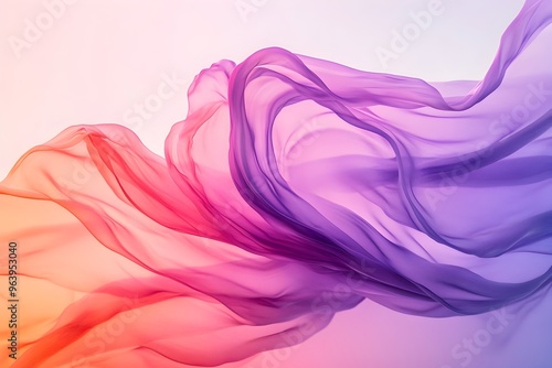 Elegant Flowing Fabric Billowing in Vibrant Gradient of Pink,Purple and Orange Colors