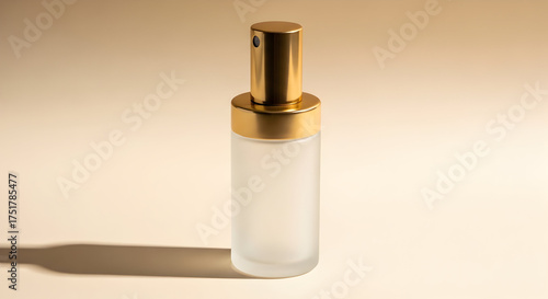 Elegant frosted glass bottle with golden accents for luxury skincare line