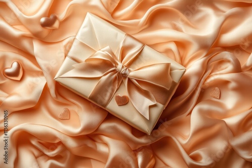 Elegant Gift Box on Peach Silk Fabric with Hearts