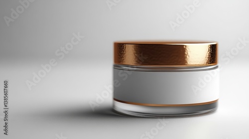 Elegant Glass Cosmetic Jar with Copper Lid Mockup Blank Label Skincare Product Packaging