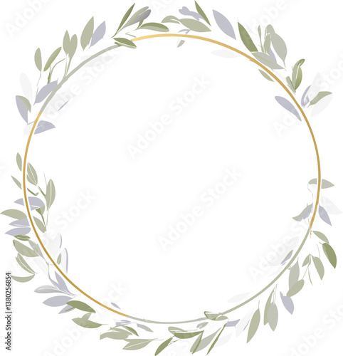 chaplet, frame, gold, circle, leaf, greenery, floral, elegant, delicate, border, design, invitation, announcement, template, background, wedding, botanical, illustration, vector, graphic, nature, plant, foliage, artwork, decorative, stylish, modern, minimal, simple, circular, round, green leaf, pastel, soft, subtile, pretty, aesthetic, wedding invitation, event, celebration, card, image, design element, clip art, graphic