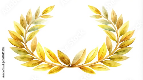 Elegant gold laurel wreath, minimalist watercolor panoramic, perfect for wedding invitations or luxury branding.